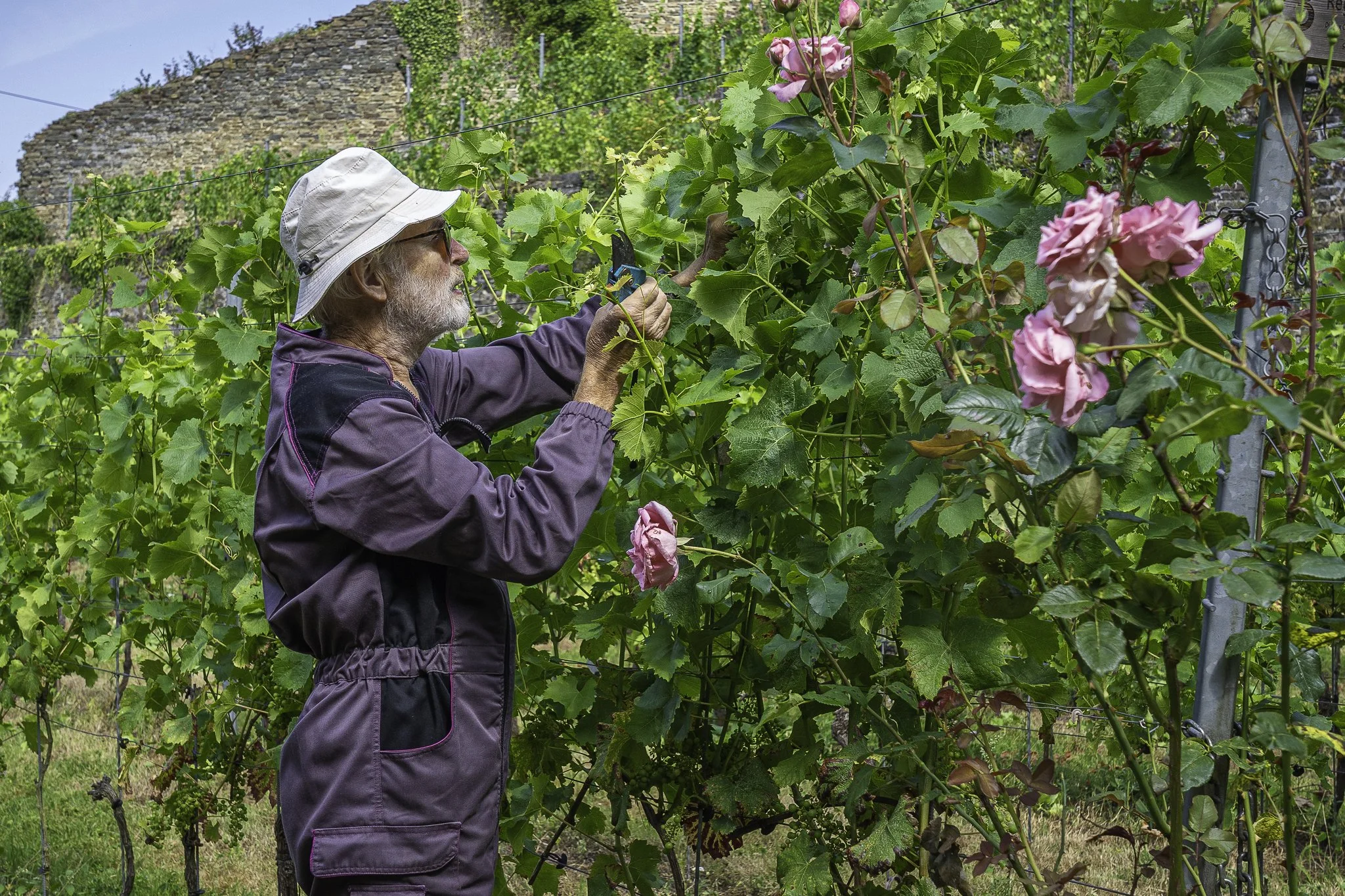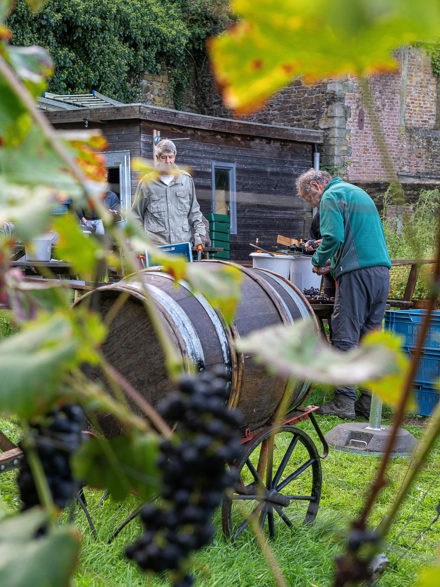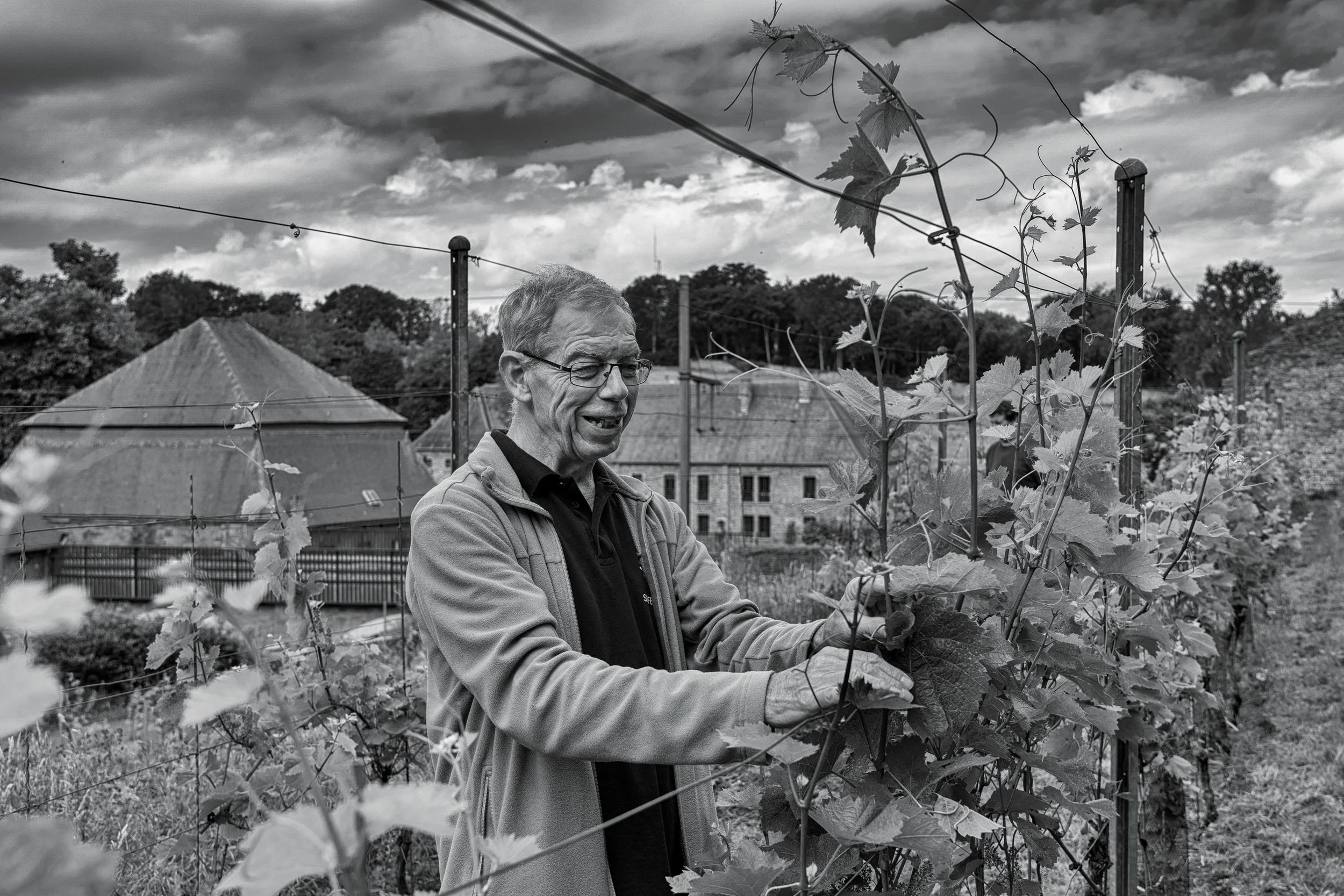 Depuis 1990, la Confrérie du Vignoble de l’Abbaye de Villers-la-Ville s’emploie à redonner vie à la petite vigne du jardin de l’abbé, laissée en friche pendant près d’un demi-siècle. Dans ce clos discret, les ceps sont répartis sur cinq niveaux, qui s’élèvent jusqu’au pied des murs de l’abbaye, comme en dialogue silencieux entre présent et histoire.